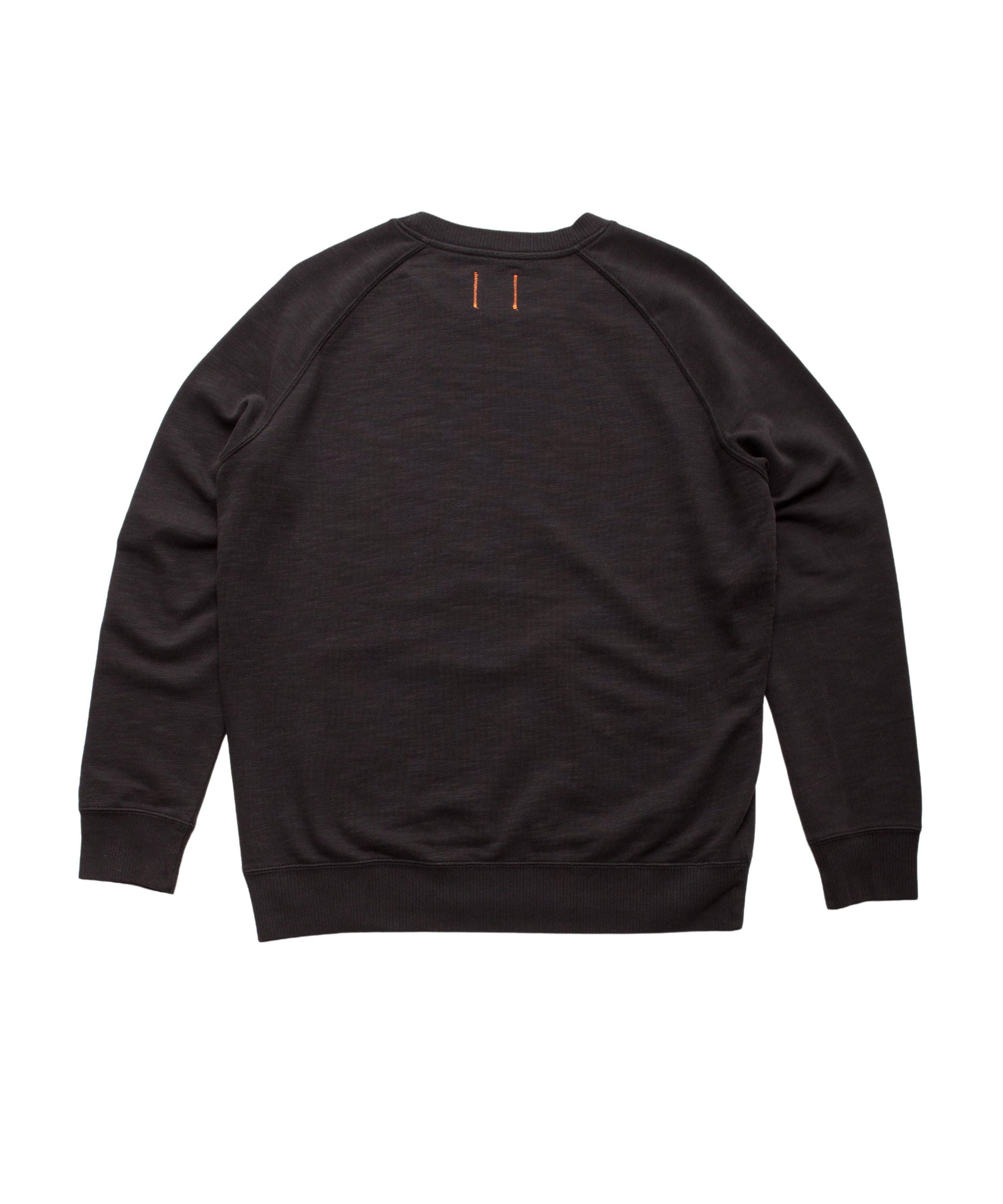 A crewneck sweatshirt cut from mid-weight cotton French terry with soft sweater-like ribbing on the neck and cuffs. Garment dyed and washed for a broken-in texture right out of the box
