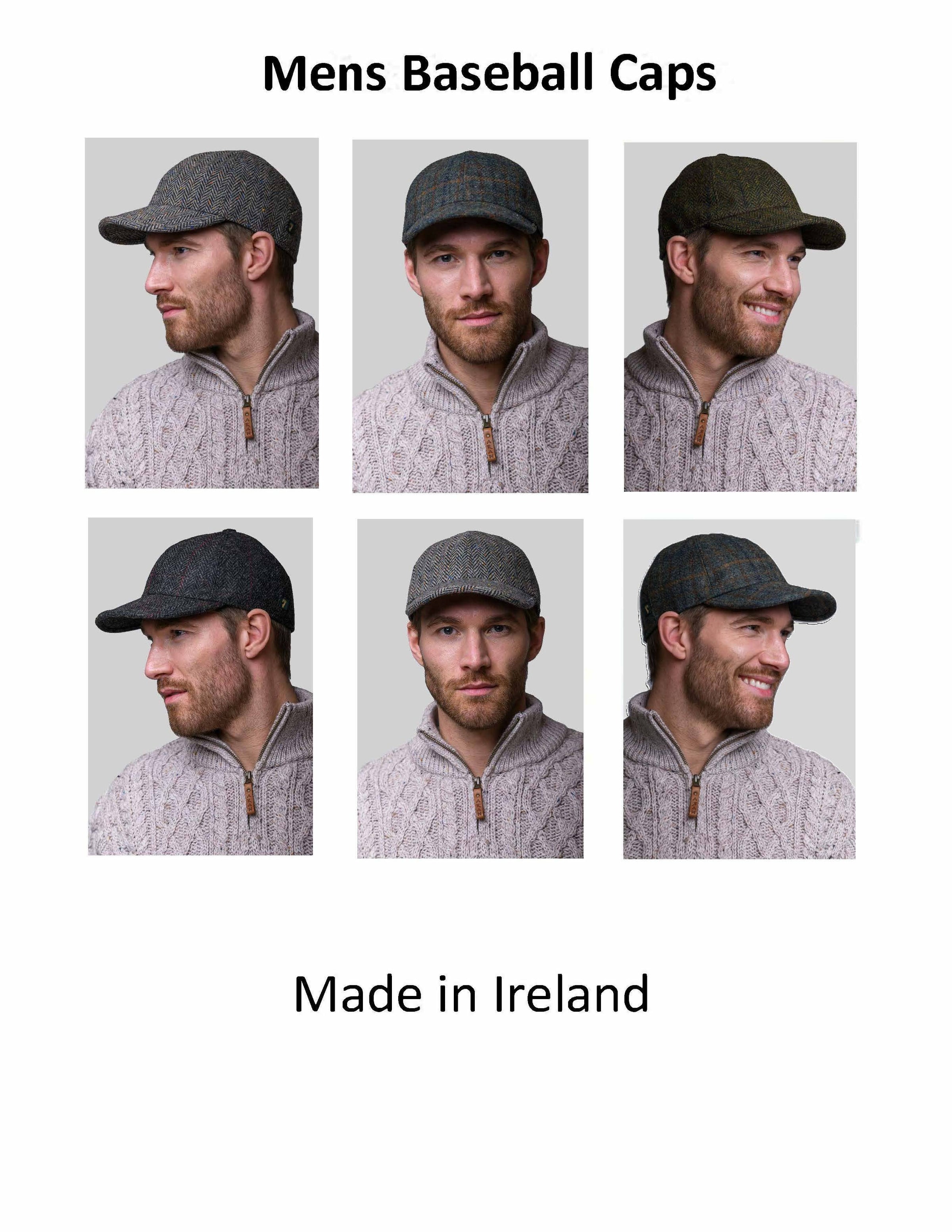 MEN'S BASEBALL CAPS - MADE IN IRELAND - 100% WOOL: Blue Herringbone / Extra Large